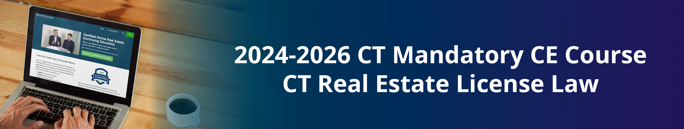 One of the most common questions asked by Connecticut agents and brokers is where they can complete the current mandatory continuing ed course. Importantly, the name of the 2024-2026 mandatory course is “CT Real Estate License Law“, not to be confused with CT Real Estate Agency Law, the title for the previous (2022-24) cycle.